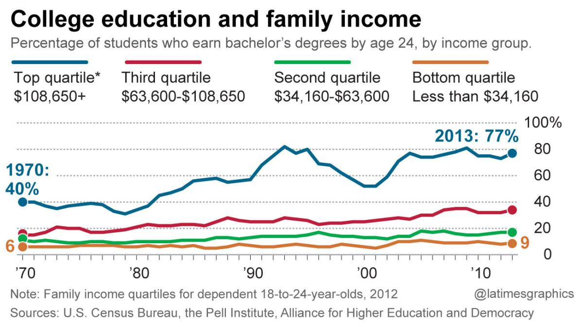 The inequality in Education showed in graph states the gap between the rich and the poor. Becoming a chasm of opportunity that often blocks the search for a better economic life for the poor.