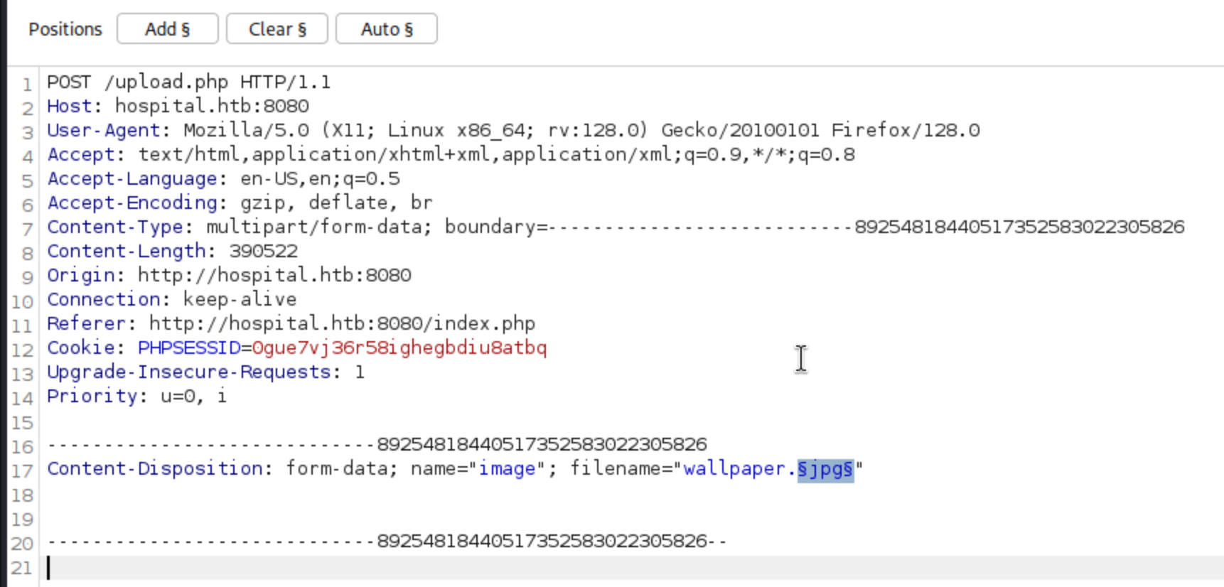 ffuf -w /usr/share/seclists/Discovery/Web-Content/web-extensions.txt -u http://hospital.htb:8080/upload.php -X POST \