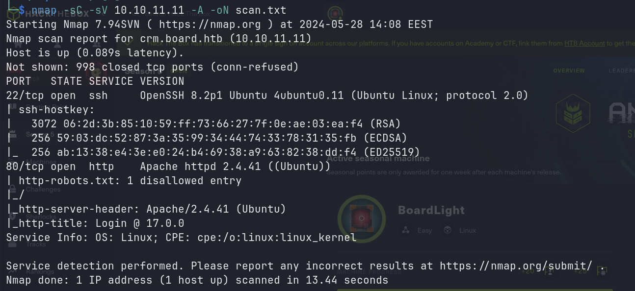 nmap -sC -sV 10.10.11.11 -A -oN scan.txt