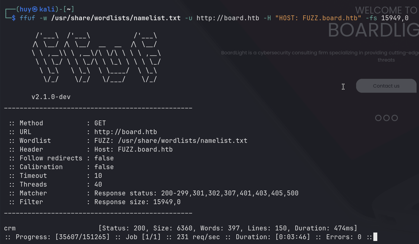 ffuf -w /usr/share/wordlists/dirb/common.txt -u http://board.htb -H "Host: FUZZ.board.htb" -fs 15949,0