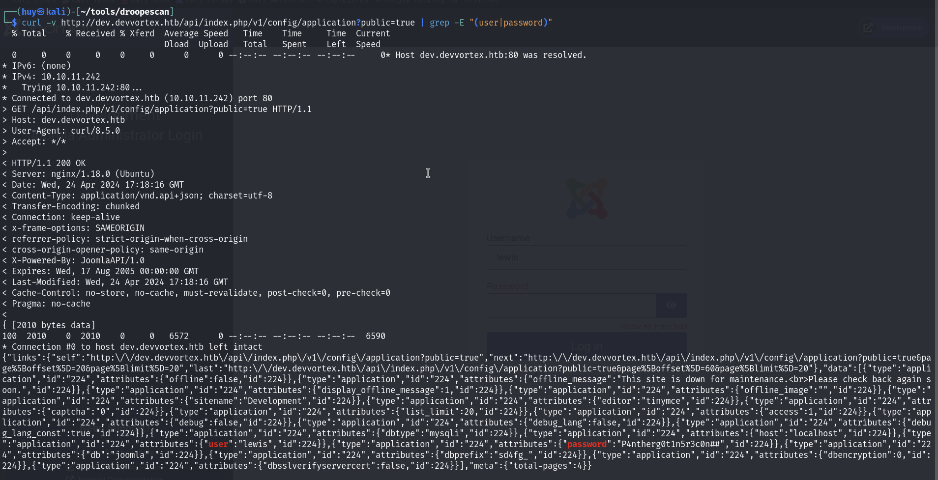Now we can confirm that the website is running Joomla CMS. I started to search for Joomla exploits and found a guidance from HackTrick, I managed to get the credentials of the joomla dashboard.