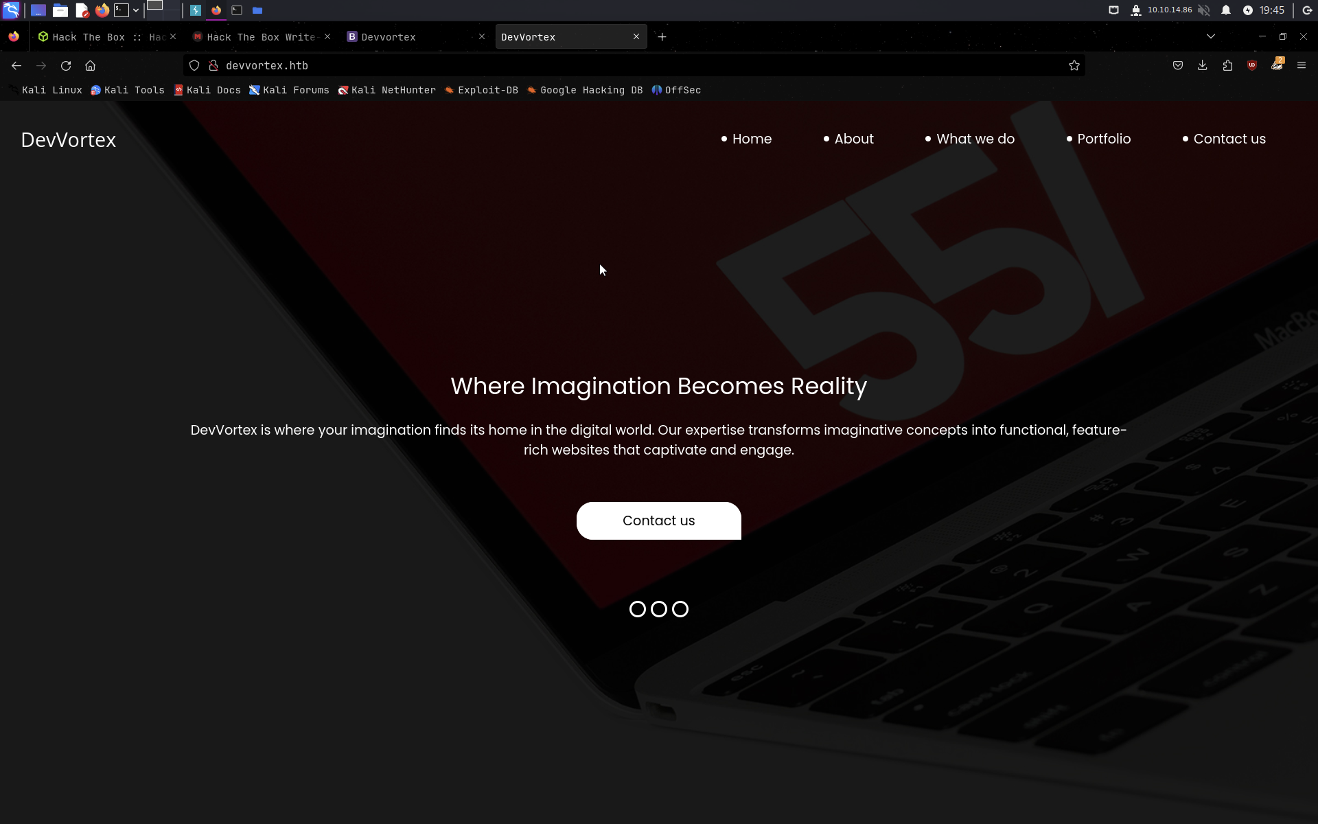 The machine has two open ports: 22 and 80. The http service is running on port 80. Added the devvortex.htb to the /etc/hosts file and visited the website.