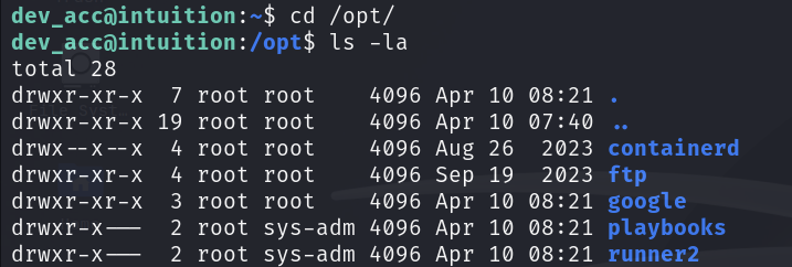 You can see here that there is another runner2 file, but only users in the sys_adm group can access it. Continue with file enumeration.