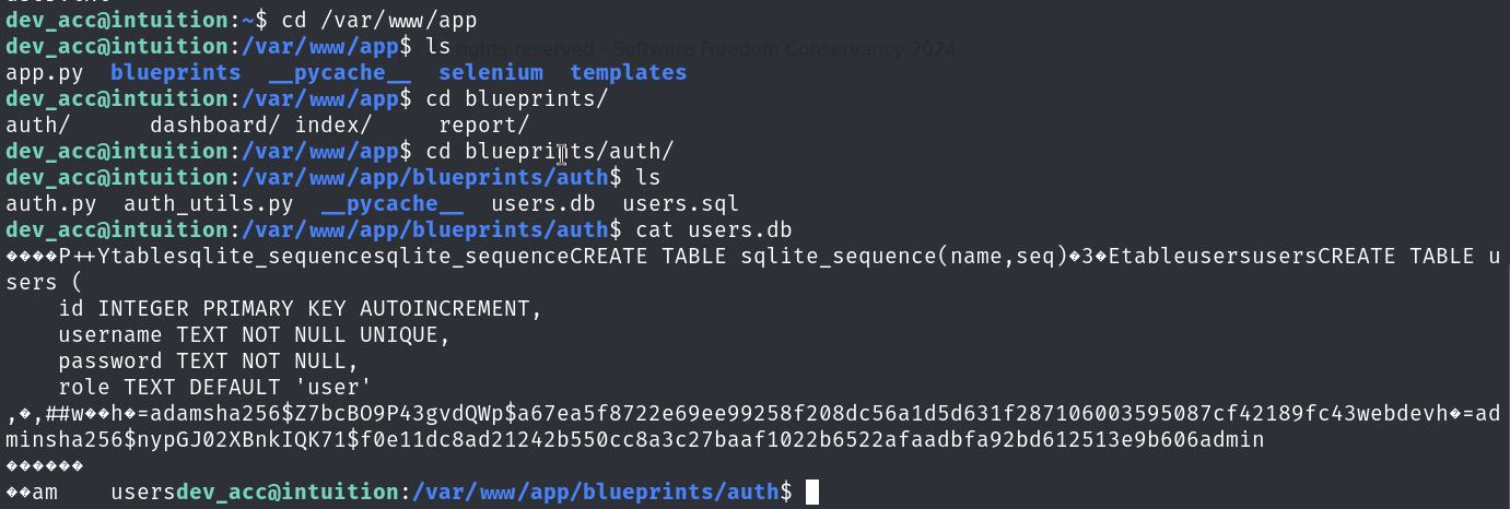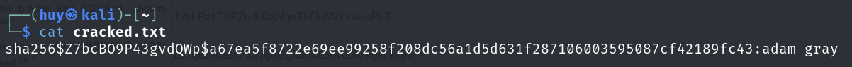 From the users table, I can see that there are 2 users: root and adam, with the hashed password. I tried to crack the password of root using hashcat but could not find the password. So I tried to crack the password of adam and successfully found the password.
