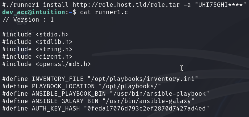 From the file run-tests.sh, I can see that there is a authentication code, but missing the last 4 characters: UHI75GHI****. And in the runner1.c file, it has the authentication key hash, let’s create a Python program to brute force the last 4 characters.