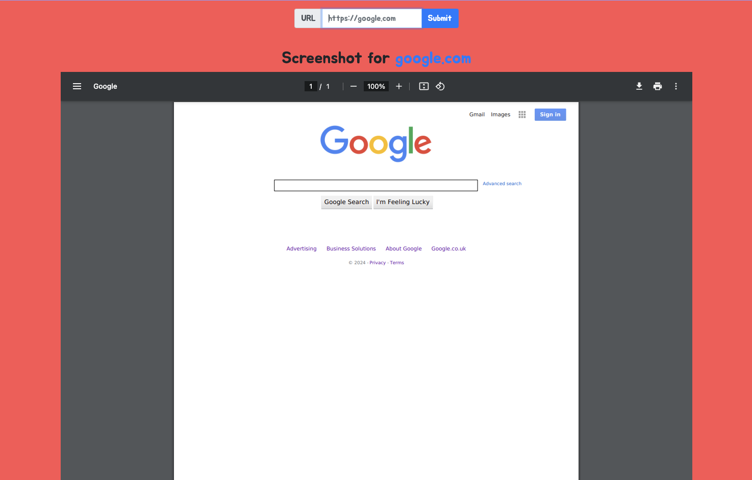 We have a website that allows us to convert web pages into PDF documents. Let’s start by visiting the website and see what we can find.